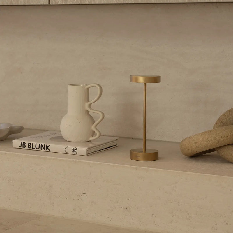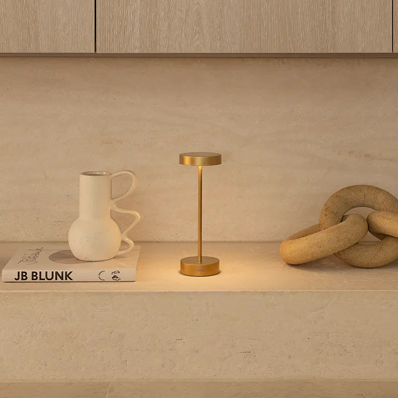 Rechargeable, dimmable LED lamp with aluminium body and polycarbonate diffuser.
